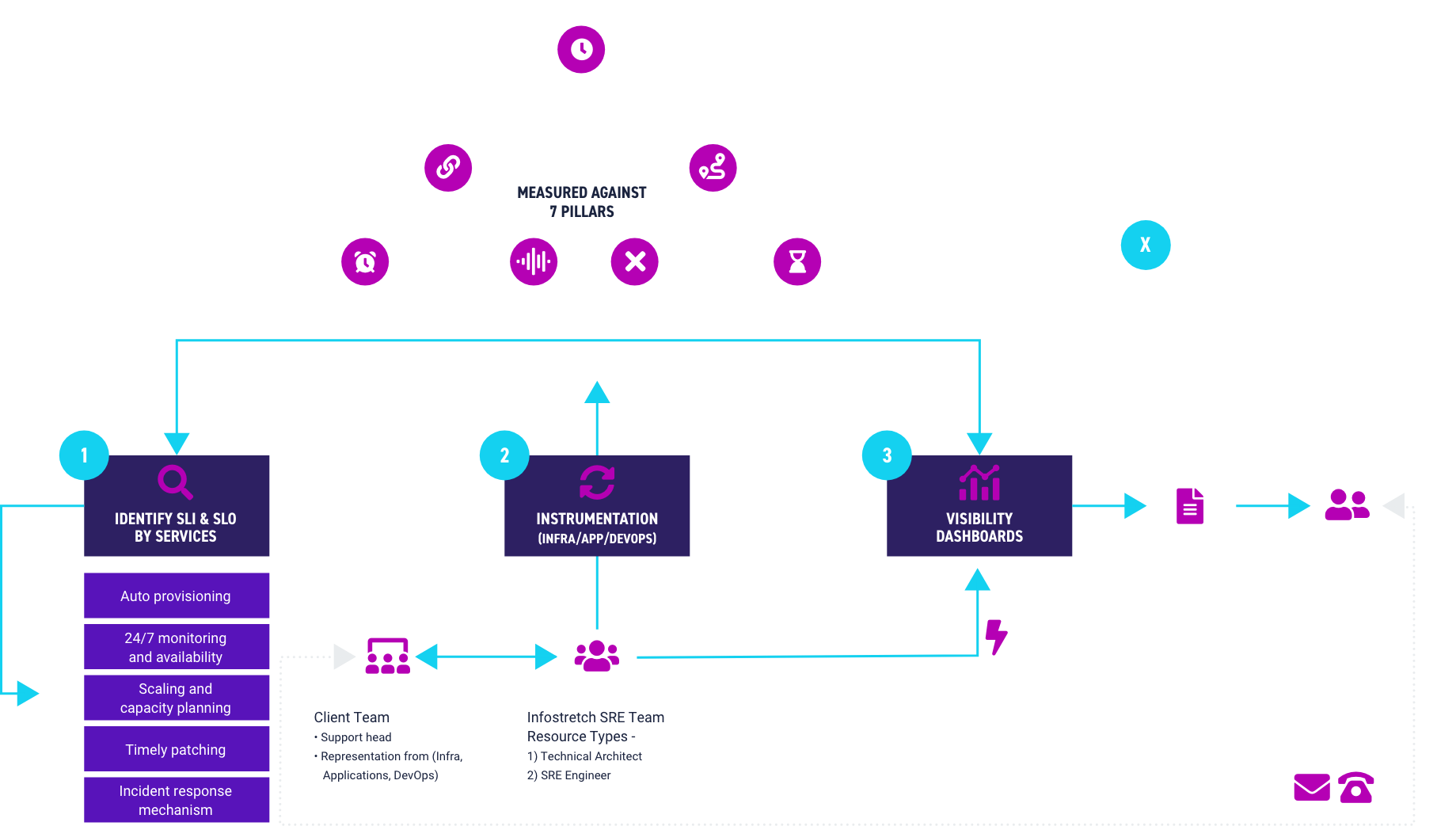 Our Site Reliability Engineering (SRE) expertise has been honed over 18+ years. We employ the latest methodologies, accelerators and enablers, and other cloud-based tools to deliver end-to-end support, irrespective of industry sector or digital maturity. Our teams are comprised of highly skilled reliability engineers who help facilitate automation and system improvements. These teams ensure adoption of DevOps constructs without any knowledge transfer required of the client, operational readiness review and transition and proactively identify improvement areas and ensuring assurance on stability.
