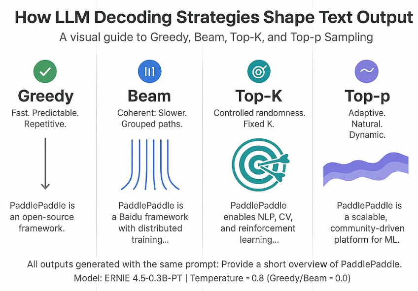 Different decoding strategies shape how outputs feel: